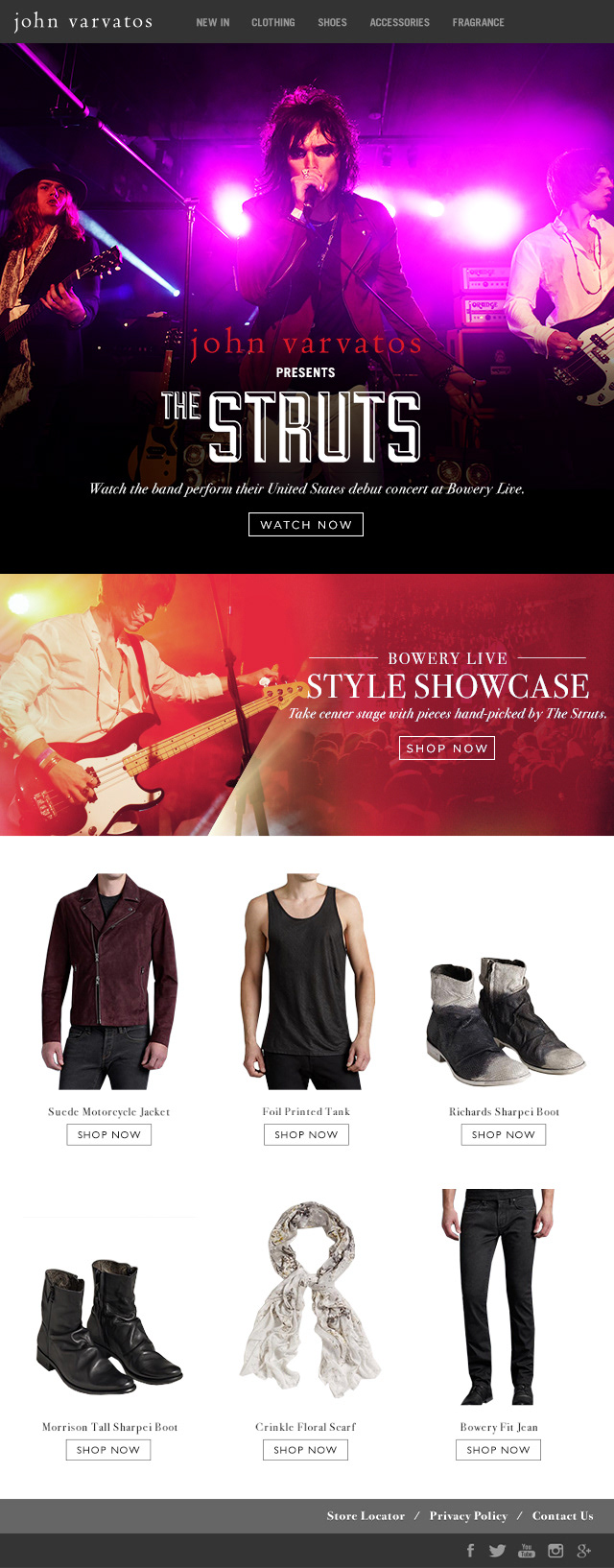 BOWERY LIVE: THE STRUTS LOCATION: NYC TALENT: THE STRUTS BRAND: JOHN VARVATOS ROLE: ART DIRECTOR, PHOTOGRAPHER, GRAPHIC DESIGN