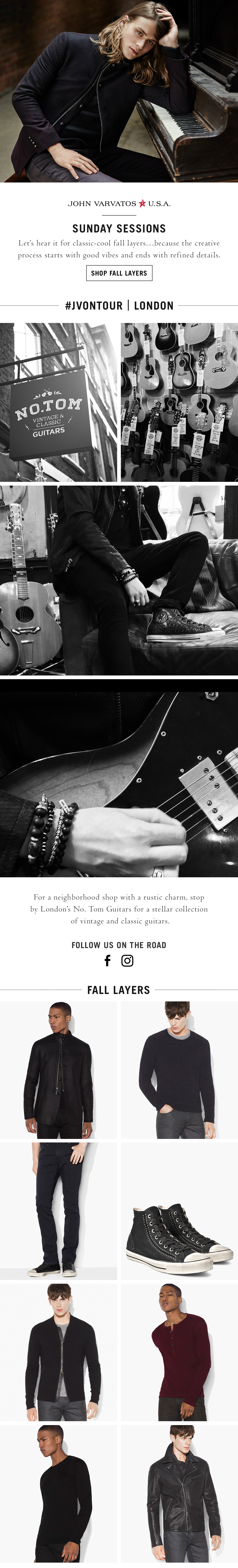 "Sunday Sessions" JV ON TOUR: LONDON LOCATION: NO. TOM, LONDON TALENT: YOU ME AT SIX, MAX HELLER BRAND: JOHN VARVATOS ROLE: ART DIRECTOR